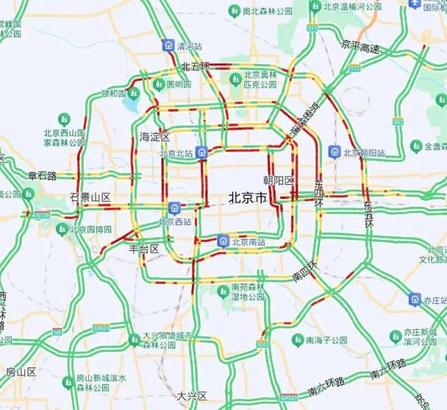 晚高峰期间,城区东西部主要环路北向南方向,北部环路西向东方向,京藏、京承、京开、京港澳、京通快速、首都机场等高速出京方向部分路段,万泉河路、通惠河北路、丰体南路等道路局部路段出城方向车流集中,CBD、朝阳门、月坛、建国门、西便门等区域交通压力较大。