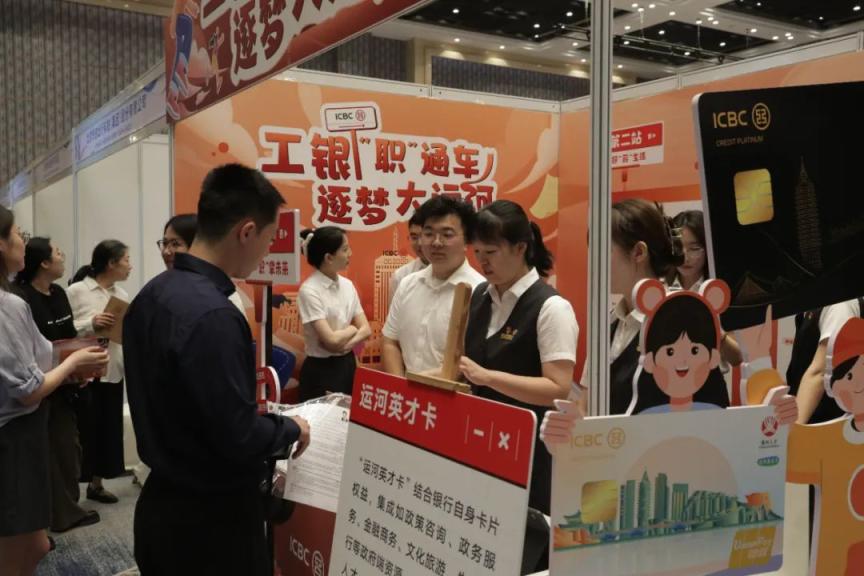 工商银行作为本次活动的合作伙伴,在现场为参与招聘会的人才提供了多元的参会体验及相关金融解决方案。